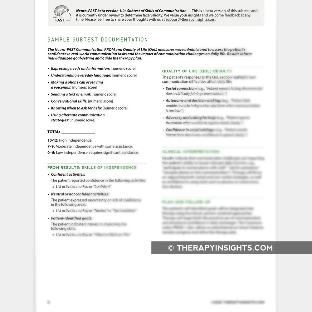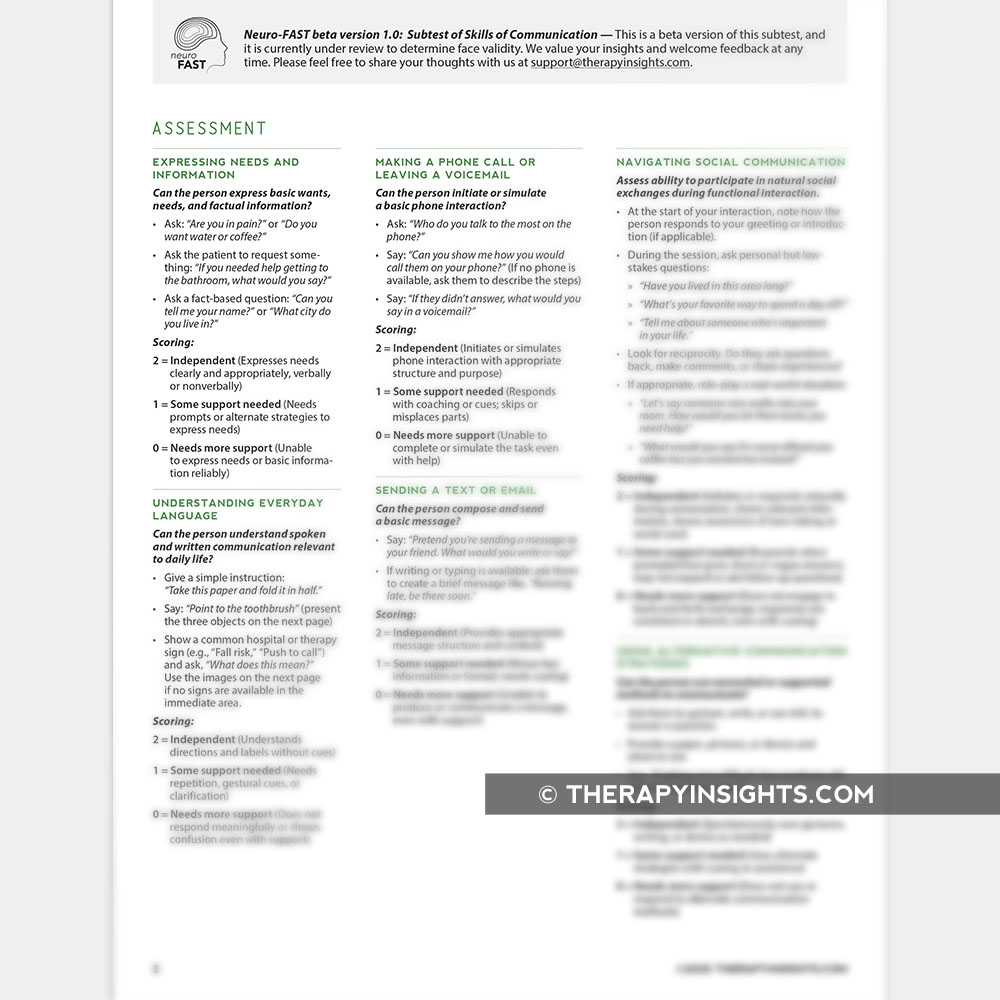 Neuro-FAST (Neurological Functional Assessment Subtests for Therapists): Subtest of Communication