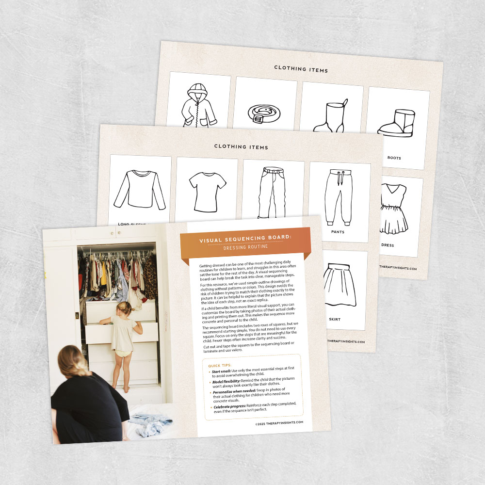 Executive FunctionFine MotorHelp kids gain independence with dressing using this customizable visual sequencing board. With simple outlines or personalized photo options, therapists can break down routines into manageable steps that match each child’s needs.