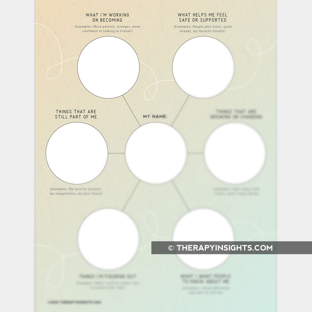 Pediatric Brain InjuryThis identity map helps children explore who they are becoming after a brain injury, with prompts that honor both what’s stayed the same and what’s changing. Use this tool to support reflection, emotional expression, and the transformative process of rebuilding a sense of self.