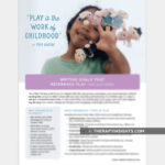Executive FunctionLanguage DevelopmentSensoryThis resource helps therapists shift away from skill-only goals by showing how to write therapy goals that center meaningful, developmentally appropriate play. It includes play-based goal examples, a quick reference to types of play, and a worksheet to help reframe existing goals in a way that supports authentic engagement.