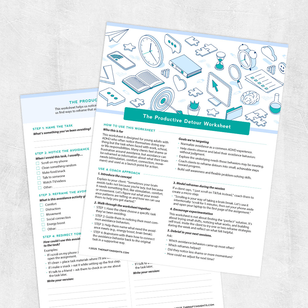 A reflective tool that helps young adults with ADHD identify avoidance patterns and reframe them into supportive steps toward progress.